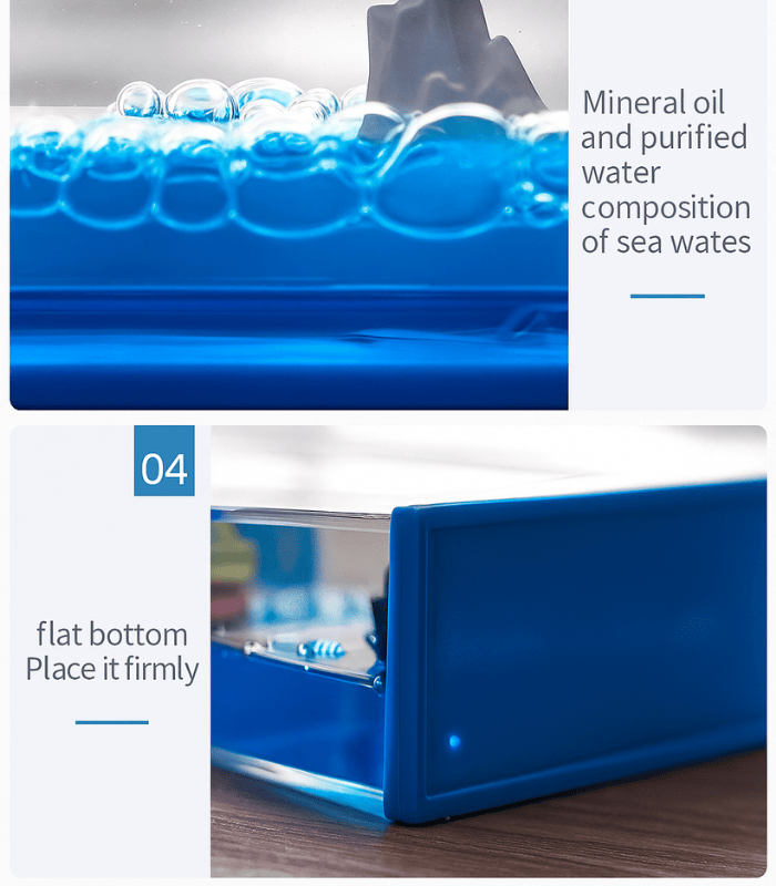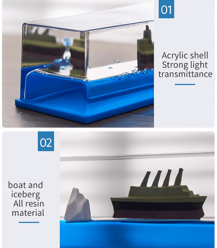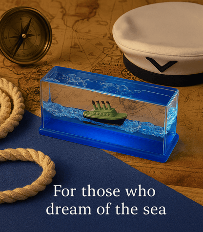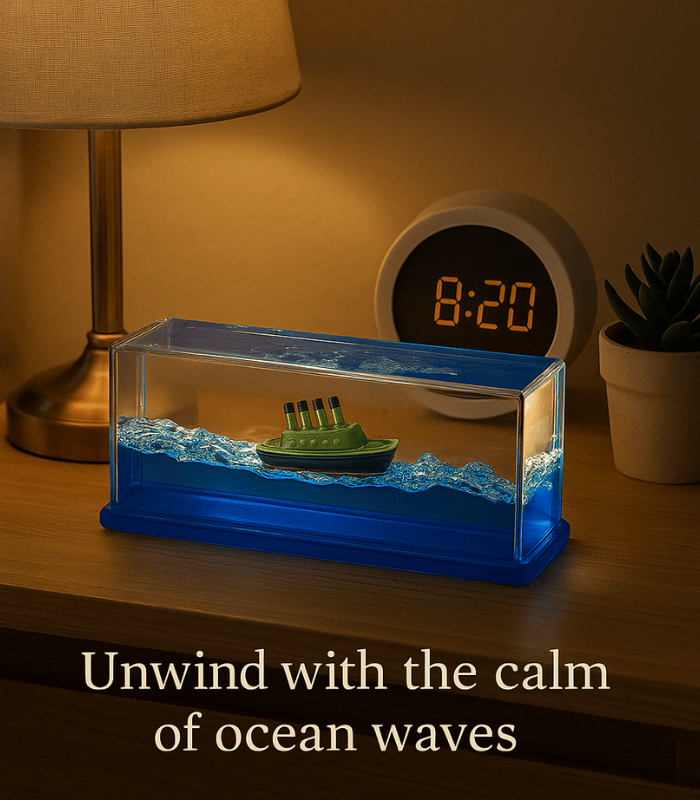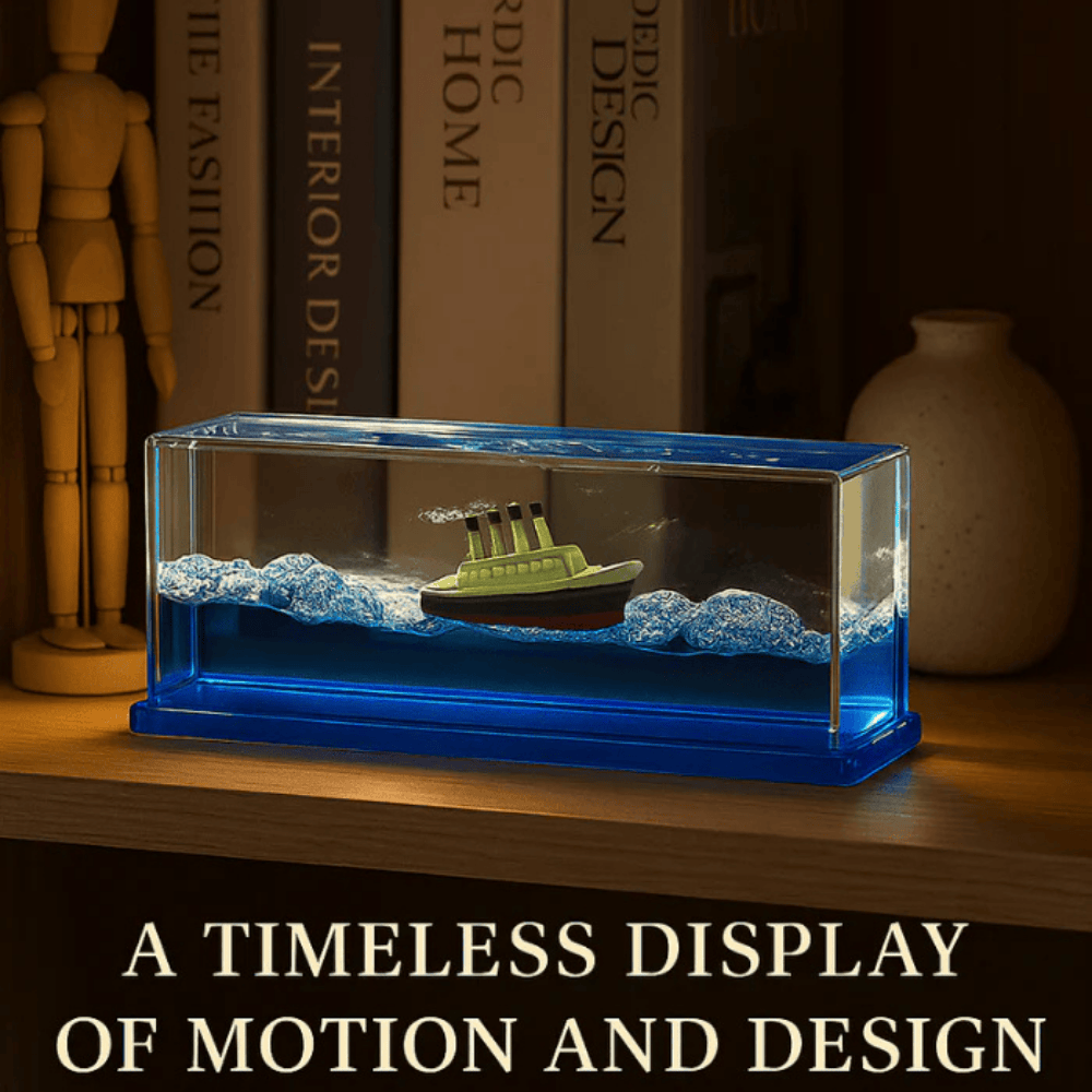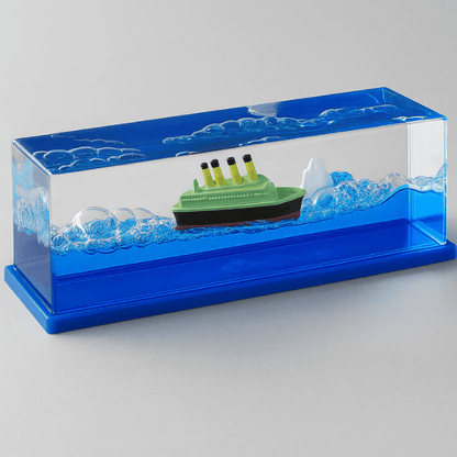Features a floating ship sailing through waves inside a crystal-clear block—visually soothing and endlessly fascinating.